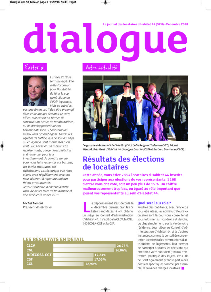 Résultats des élections des représentants des locataires Lire Dialogue de décembre 2018