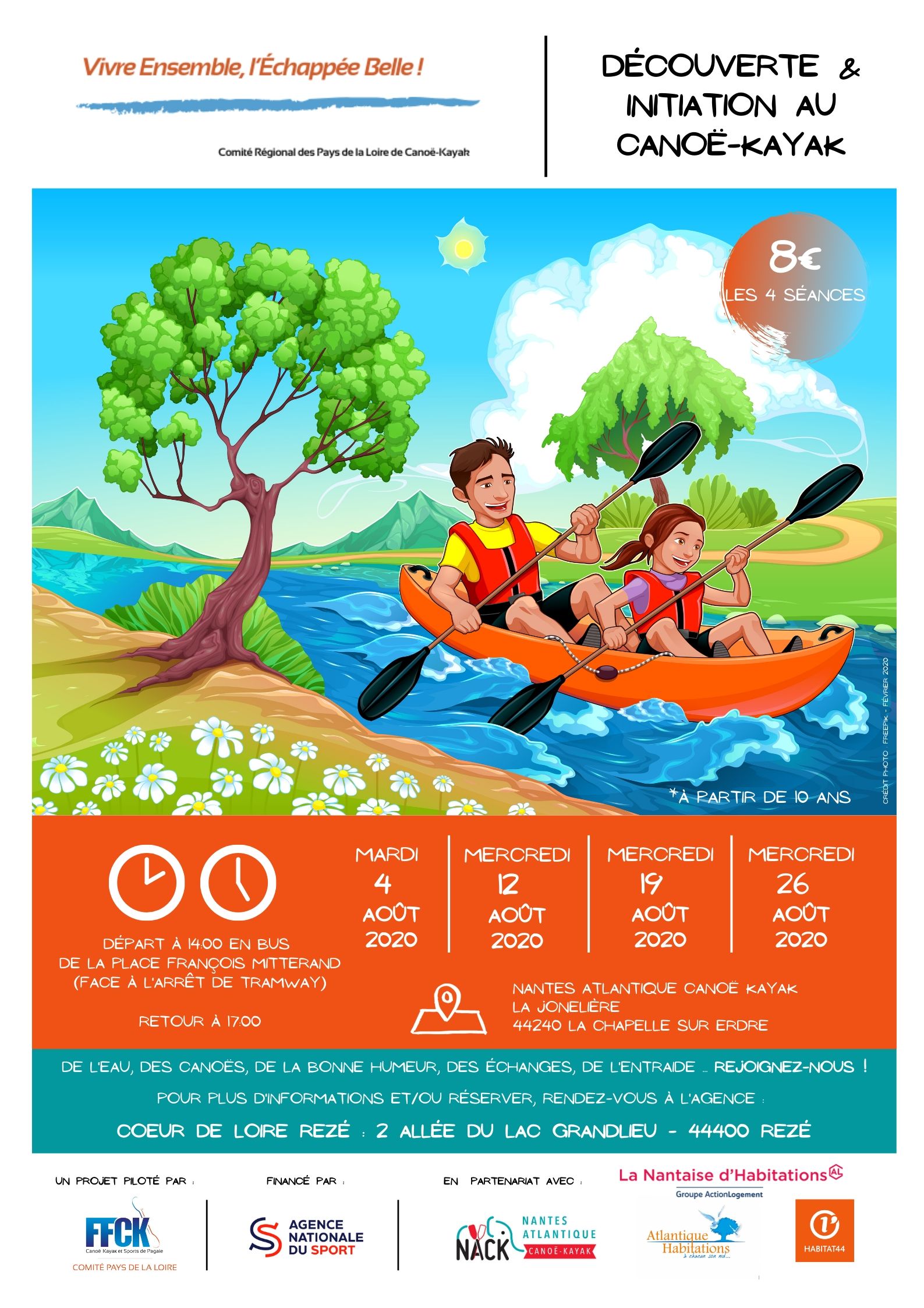 Le NACK (Nantes Atlantique Canoë-Kayak) et les 3 bailleurs présents sur le quartier du Château à Rezé, (Habitat 44, Atlantique Habitations et la Nantaise d’Habitations), proposent aux locataires des séances de découverte et d’initiation au canoë-Kayak.