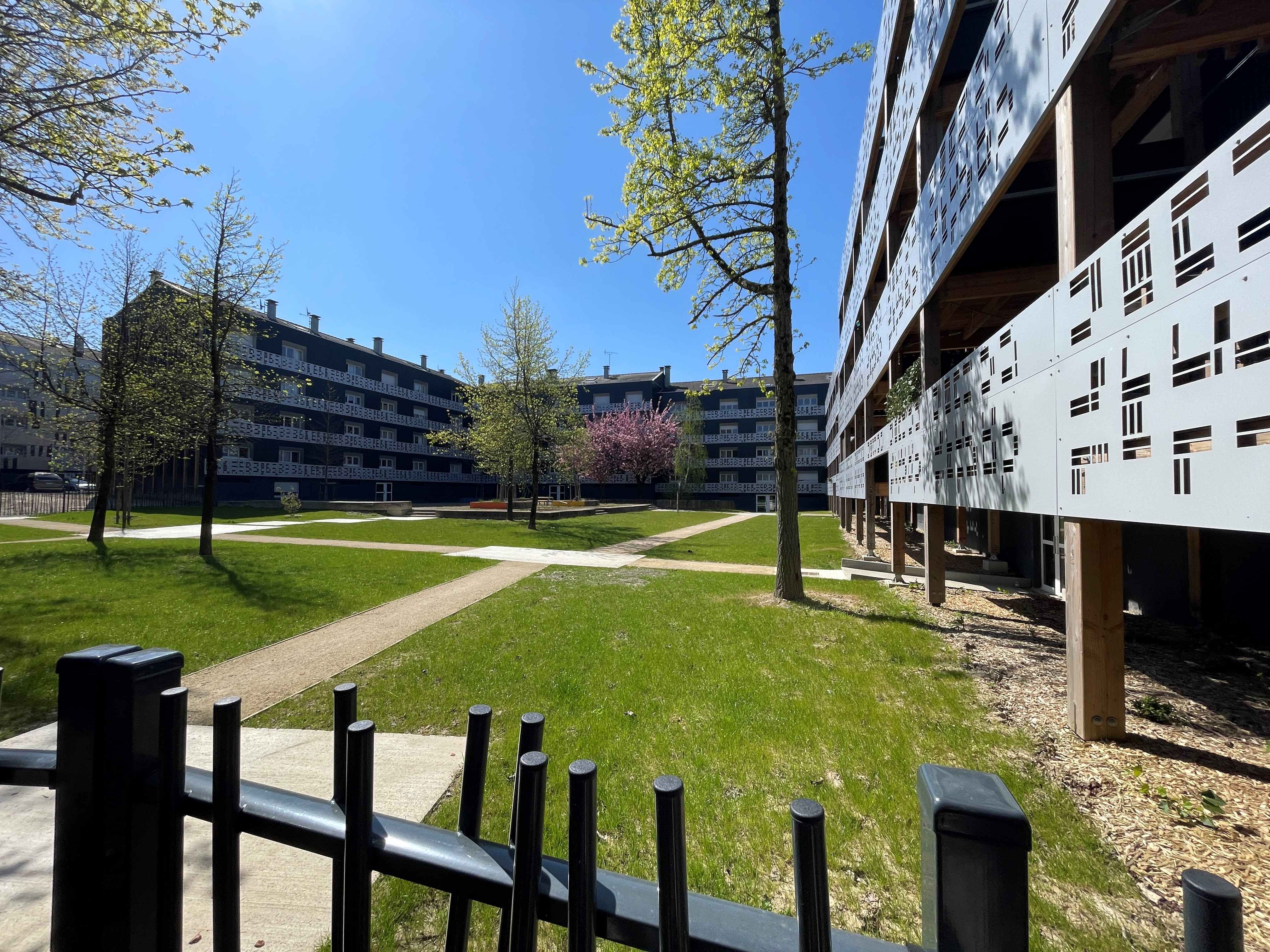 La transformation ne s’arrête pas aux logements : plusieurs immeubles ont été démolis pour repenser la circulation, aérer les îlots et ouvrir le quartier sur la ville. L’architecture a été retravaillée pour valoriser l’existant tout en apportant une touche contemporaine, avec des matériaux nobles et durables (ardoise, bois, acier, enduit à la chaux…). Les balcons, pensés pour les usages du quotidien, prennent des formes adaptées à leur orientation invitant à profiter pleinement des espaces extérieurs.